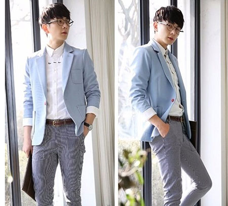 搭配方式:這兩季特別流行全身同色系的穿搭,春夏推薦淺卡其亞麻成套西裝,下身選擇九分貼身剪裁的西裝褲,搭上簡單白色帆布鞋,除了能營造純粹簡約、干凈俐落的形象之外,也能拉長身形比例,更顯高挑帥氣。