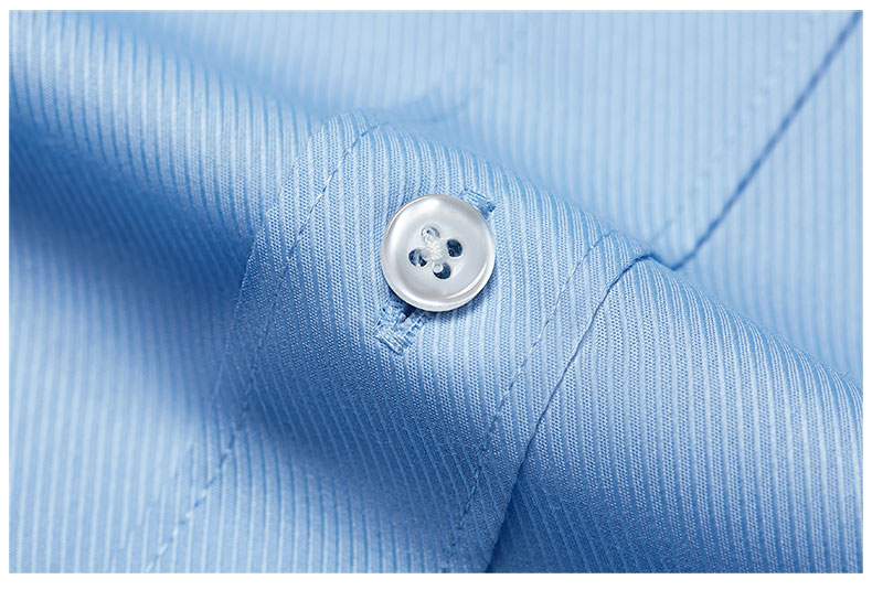 襯衫扣選用自然環保樹脂扣,明門襟設計,時尚優雅.