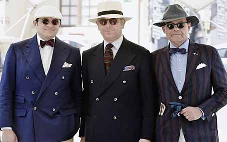 西裝扣子雖常被看作“點狀態”存在,卻更能標識出各類西裝的不同。如果走進一間封閉的黑屋子,我們雖身處空間之內,卻很難感覺到空間的存在,此時,若劃亮一根火柴,或點亮一根蠟燭,即便只有微弱的光,我們也能意識到空間的存在,這就是“點”存在的意義。紐扣于西裝而言,就好比燭火于空間,正是有了扣子的存在,這才圈定了西裝的衣身形制。在面積較大的西裝上釘一粒扣子,扣子所在之處便會讓我們產生緊張感,正是這種緊張感才讓我們意識到,西裝竟是這樣一種存在。西裝紐扣的位置、質感、形狀及釘扣方式等細節,看似與西裝造型無關,卻通過影響人們的意識和判斷,傳遞出西裝美或不美的感受,標識出各類西裝特點,左右著人們對西裝美感的主觀判斷。